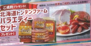 さらには、ご成約プレゼントとしまして、期間中にスズキの新車をご成約いただいたお客様に